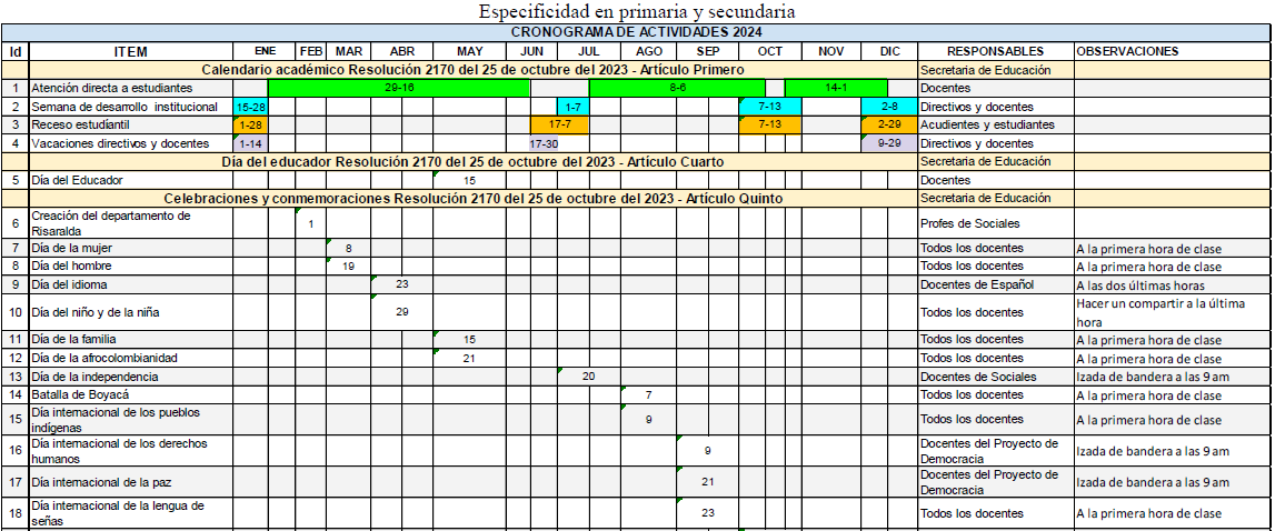 RESOLUCIÓN CRONOGRAMA DE ACTIVIDADES 2024
